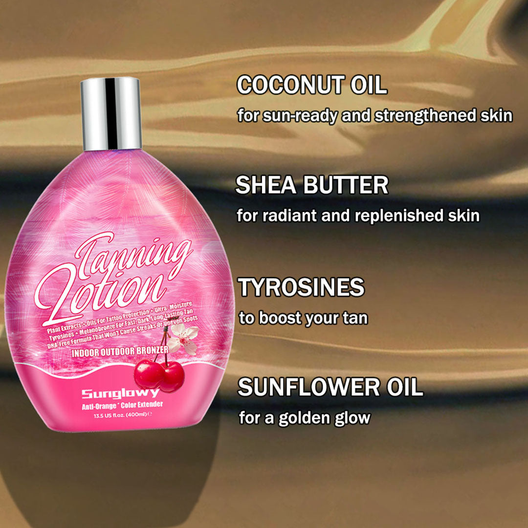 Sunglowy Tanning Lotion For Tanning Beds Cherry, Tanning Bed Lotion With Bronzer, 13.5fl.oz